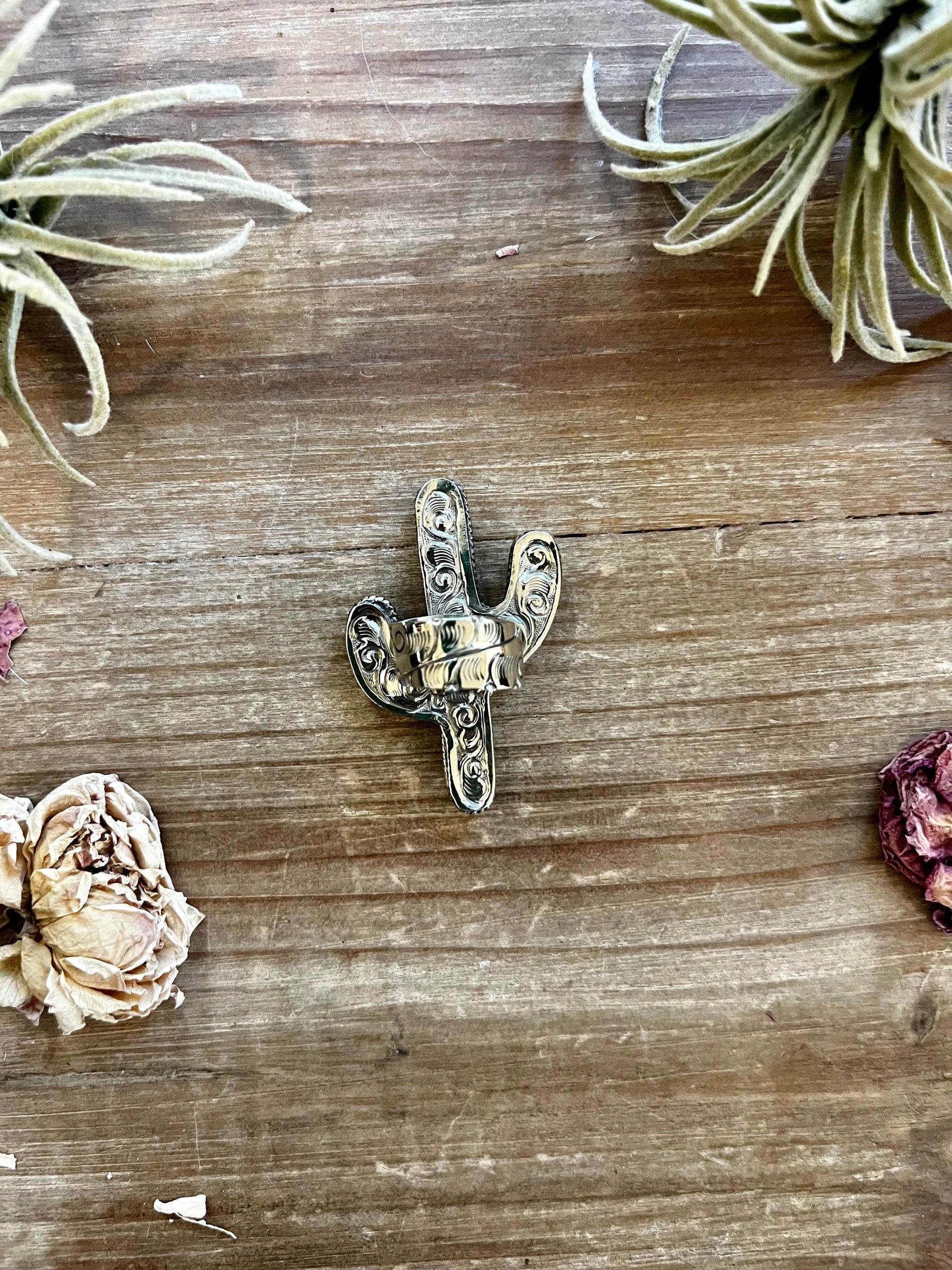 Blue Turquoise Cactus Ring with flower - Adjustable - Brass silver