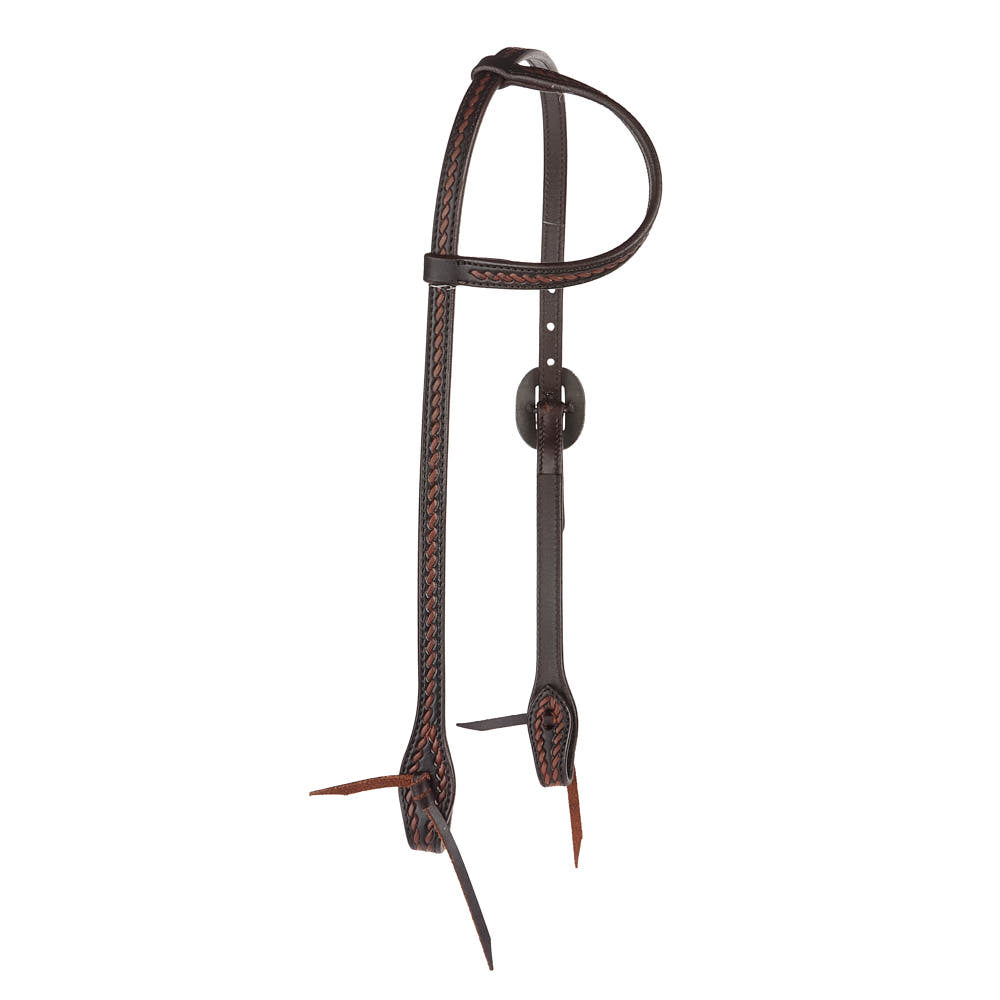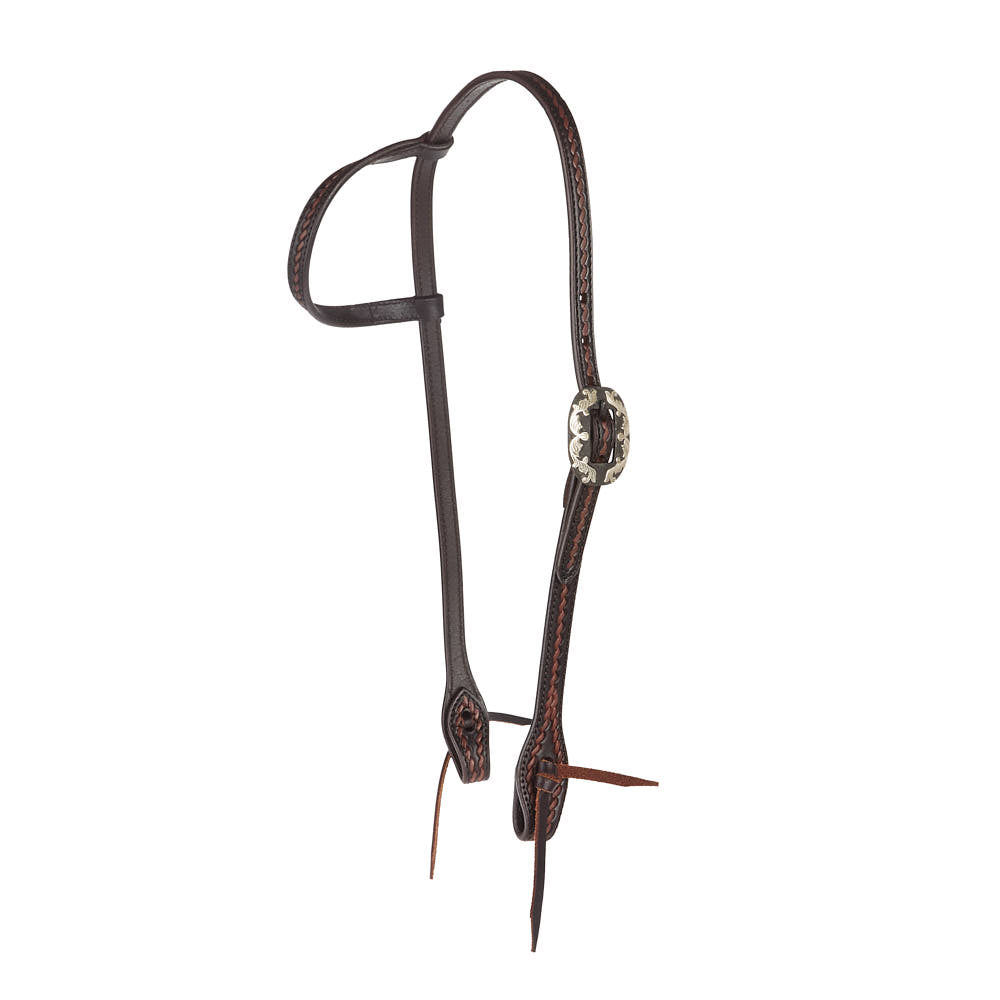 - Heavy Oiled Rope Tooling Silver Scroll Double Buckle 5/8 inch Single Ear Headstall