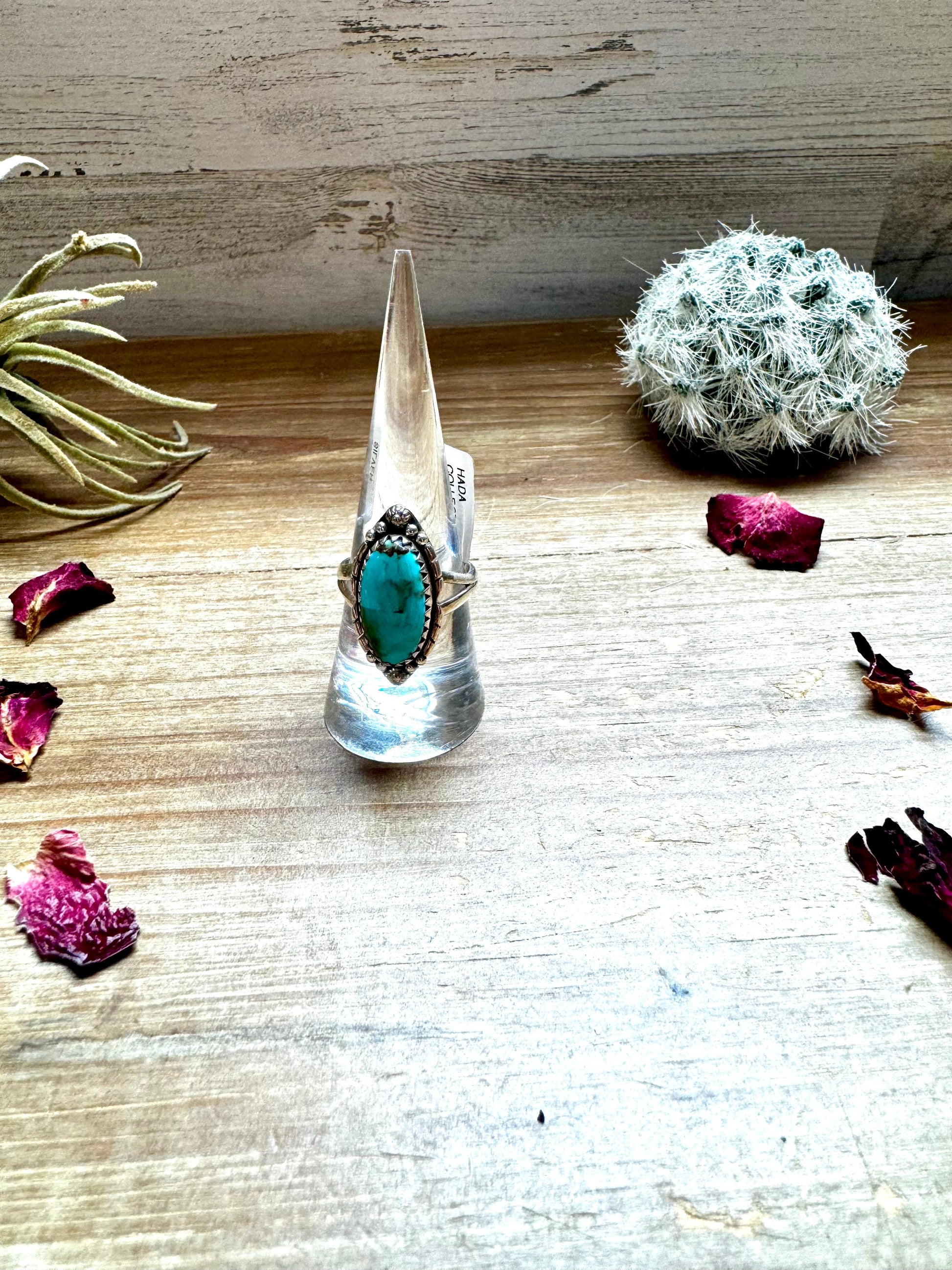 Ring size 7 & 8.5- long kingman turquoise and sterling silver