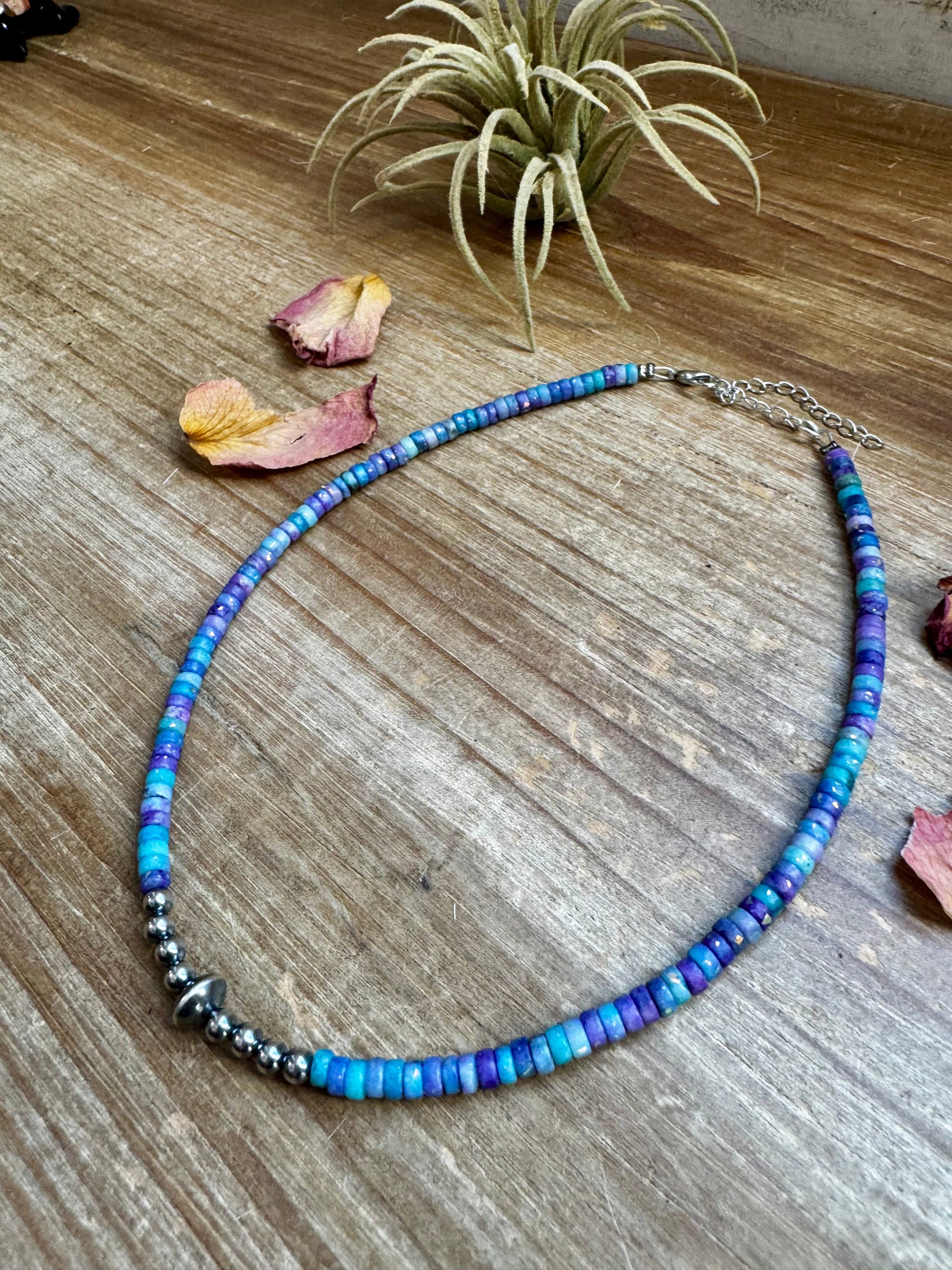 Sterling Silver Pearls choker and Purple Dolomite Heishi