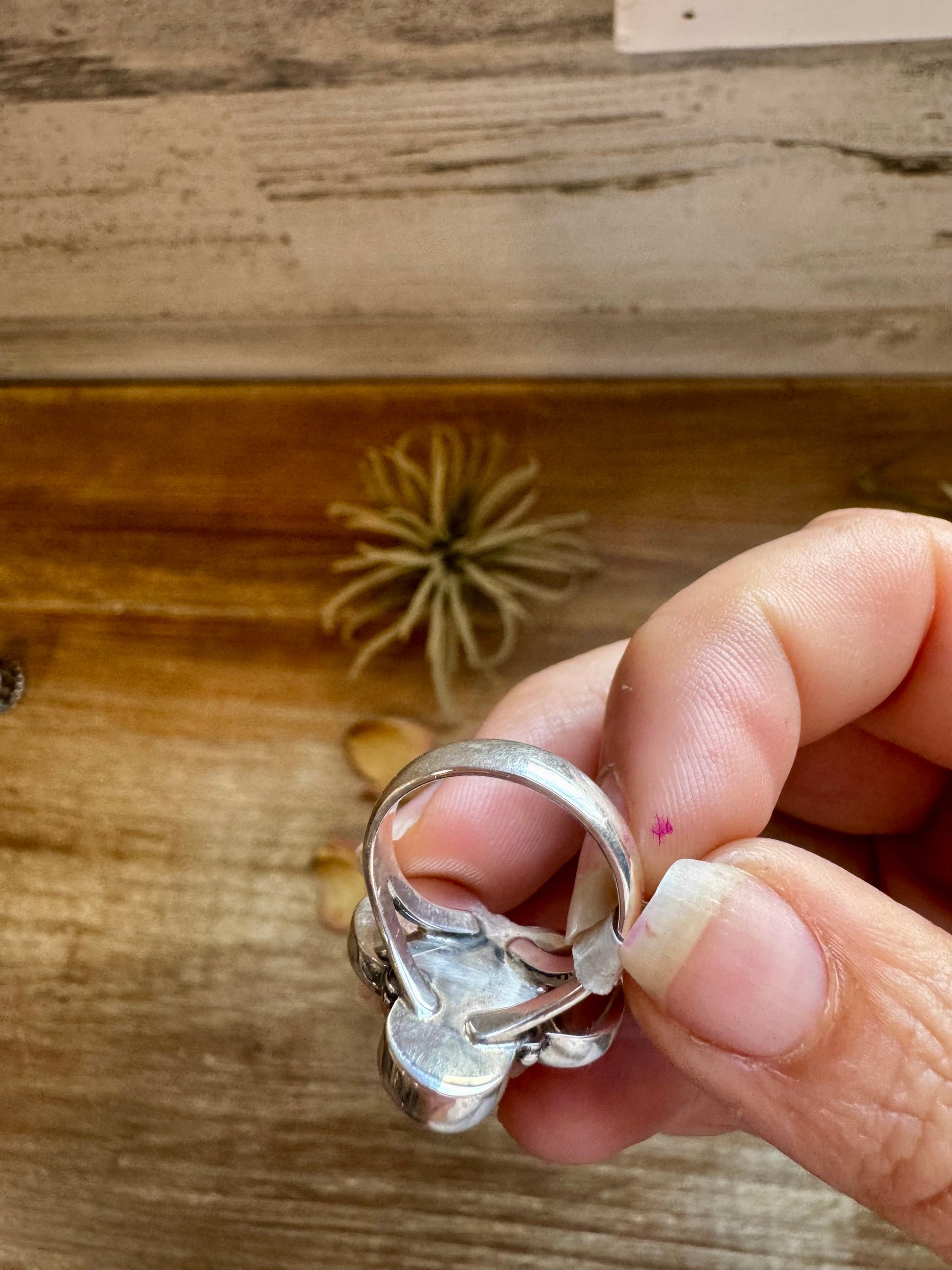 A dainty yet eye-catching ring featuring three round Kingman turquoise stones in a sterling silver setting. Lightweight and easy to wear, this piece is perfect for stacking or wearing solo for a subtle pop of color.